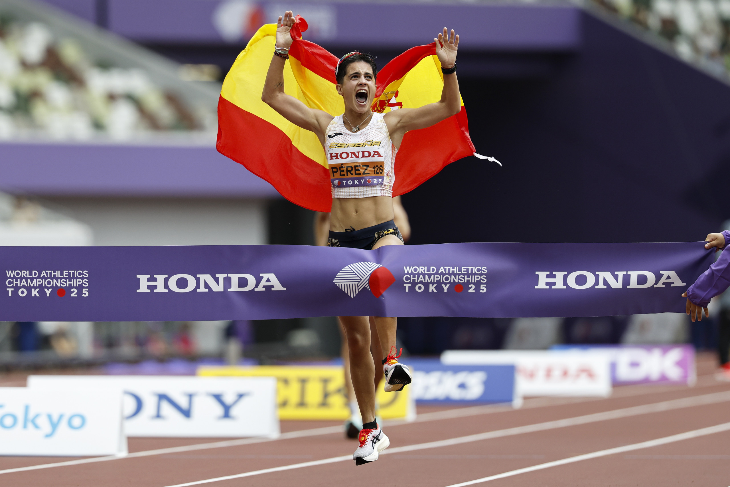 Nueva gesta de María Pérez. La atleta granadina, con un tiempo de 2h39:01, se ha proclamado este sábado en Tokio campeona del mundo de 35 kilómetros marcha, revalidando así el título que logró hace dos años en Budapest (Hungría).