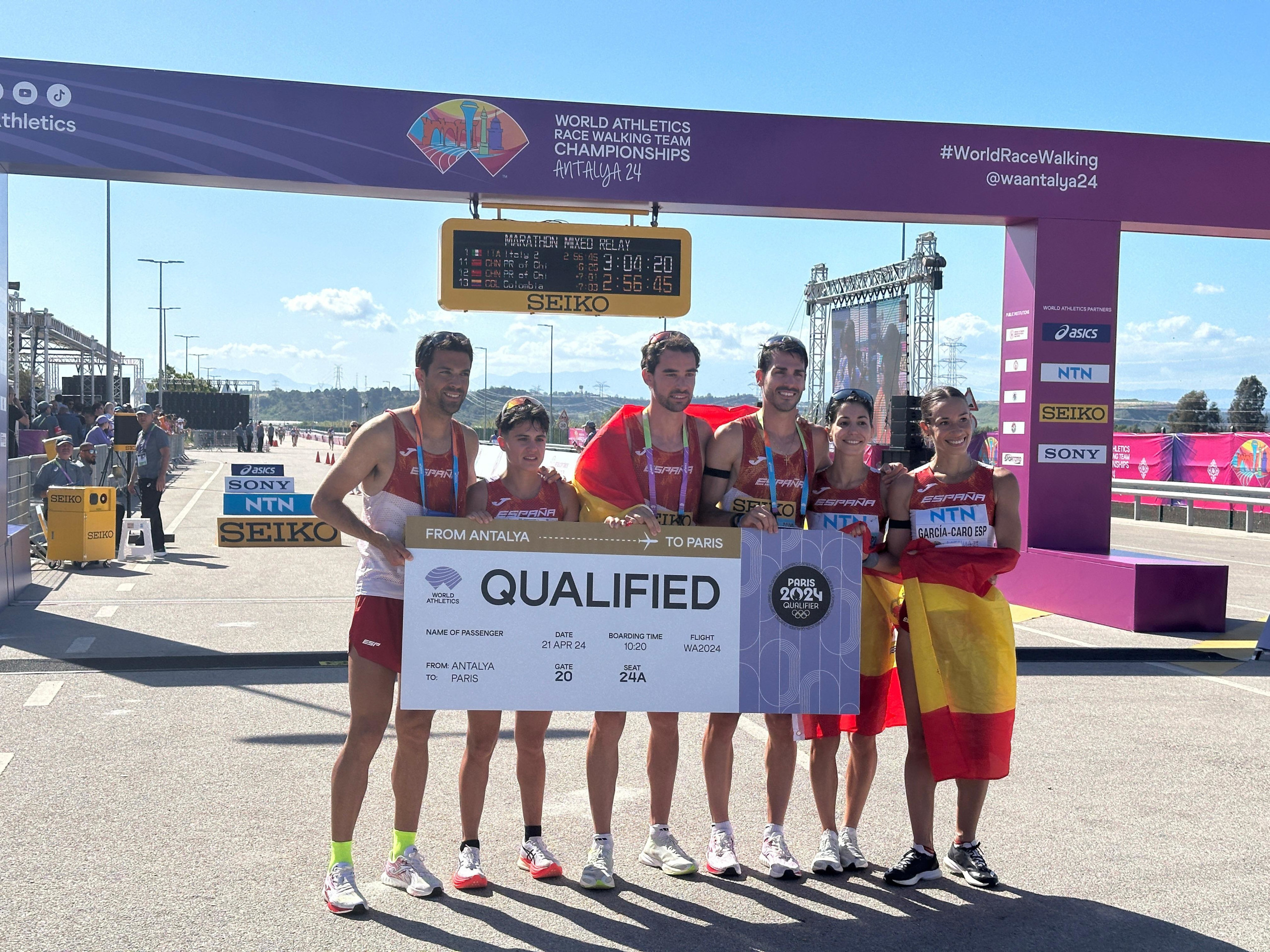 España ha conseguido dos plazas para los Juegos Olímpicos de París 2024 en la modalidad de relevo mixto de marcha este domingo en el Campeonato del mundo de marcha por equipos, que se ha celebrado en Antalya (Turquía) y en el que la pareja formada por Álvaro Martín y Laura García-Caro ha logrado la medalla de bronce.